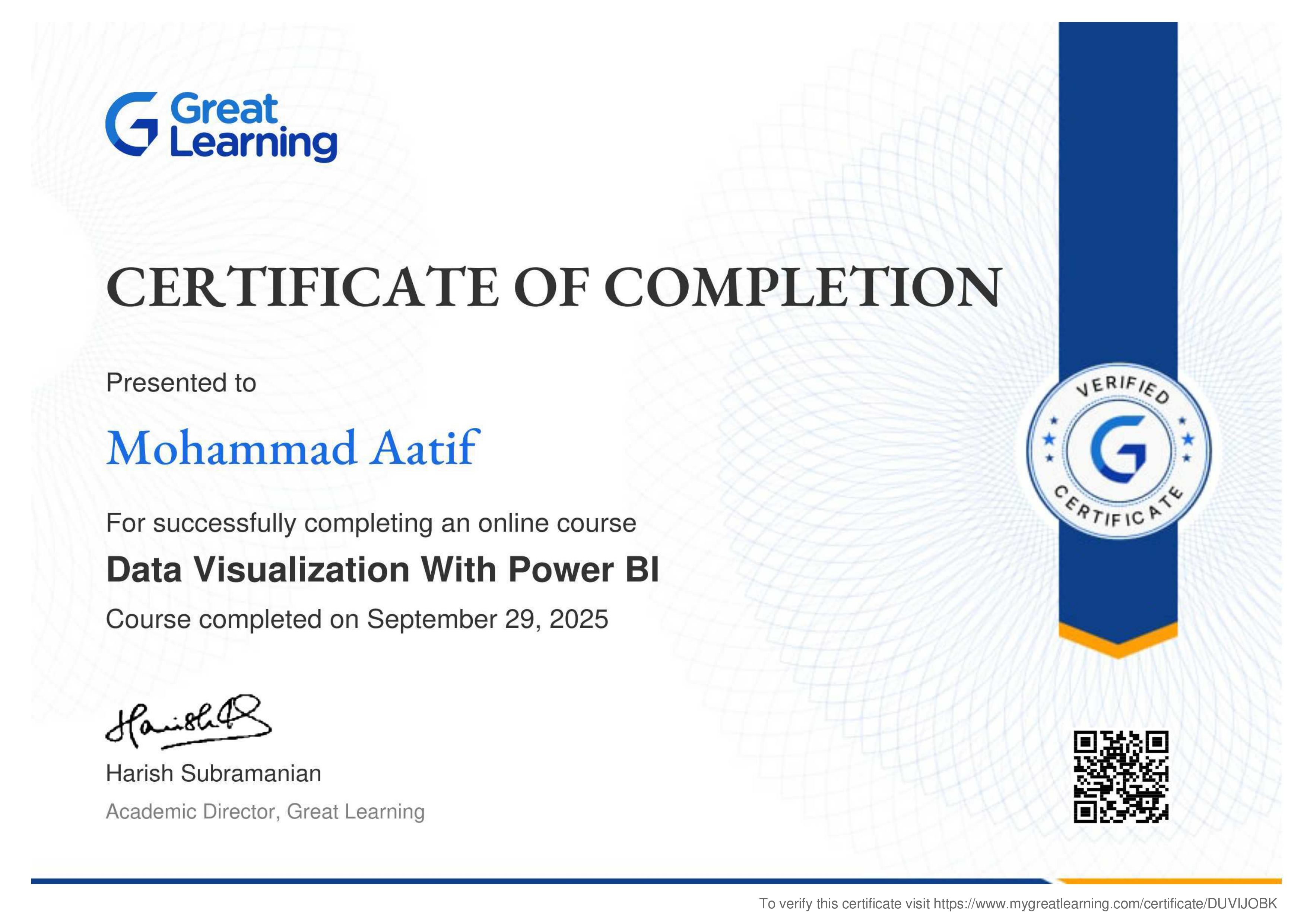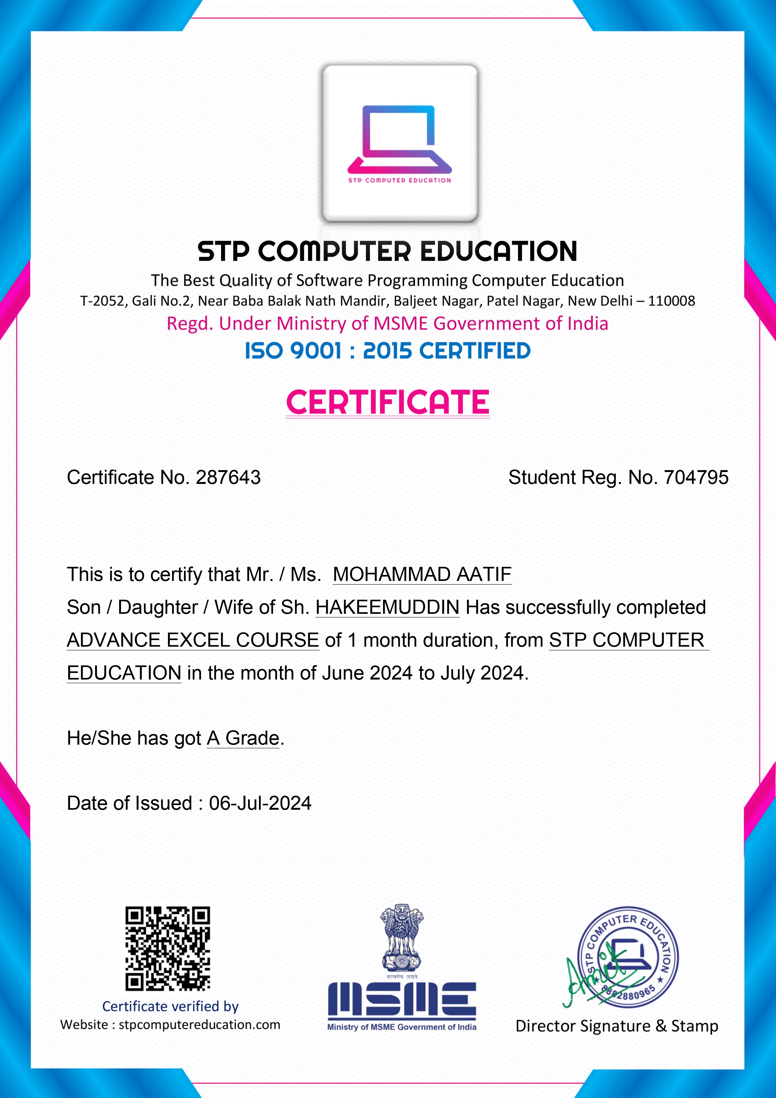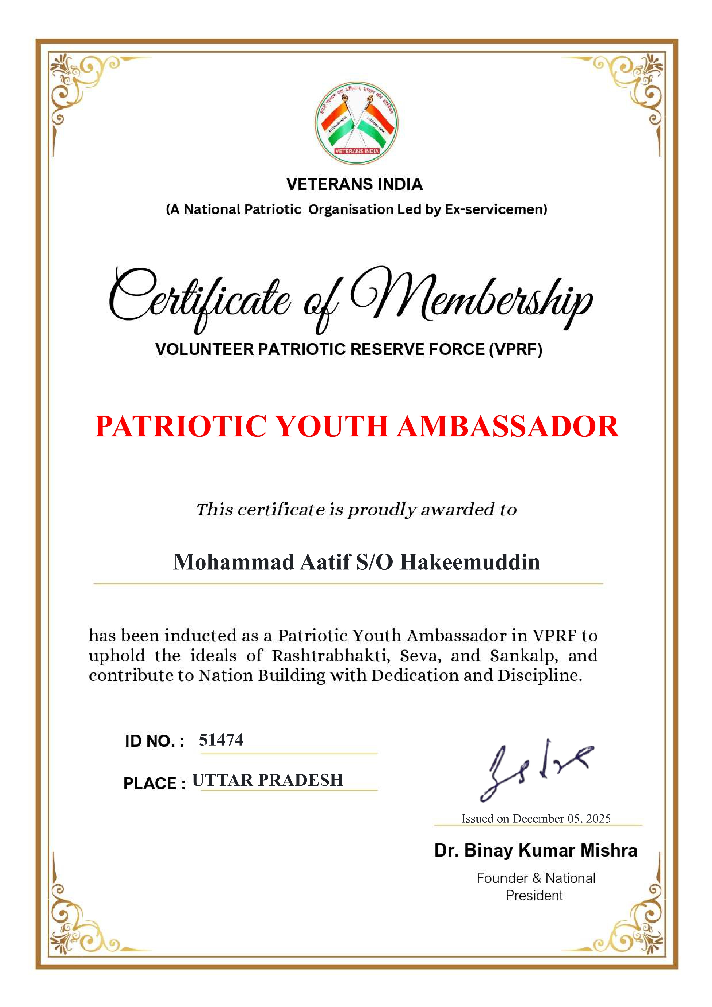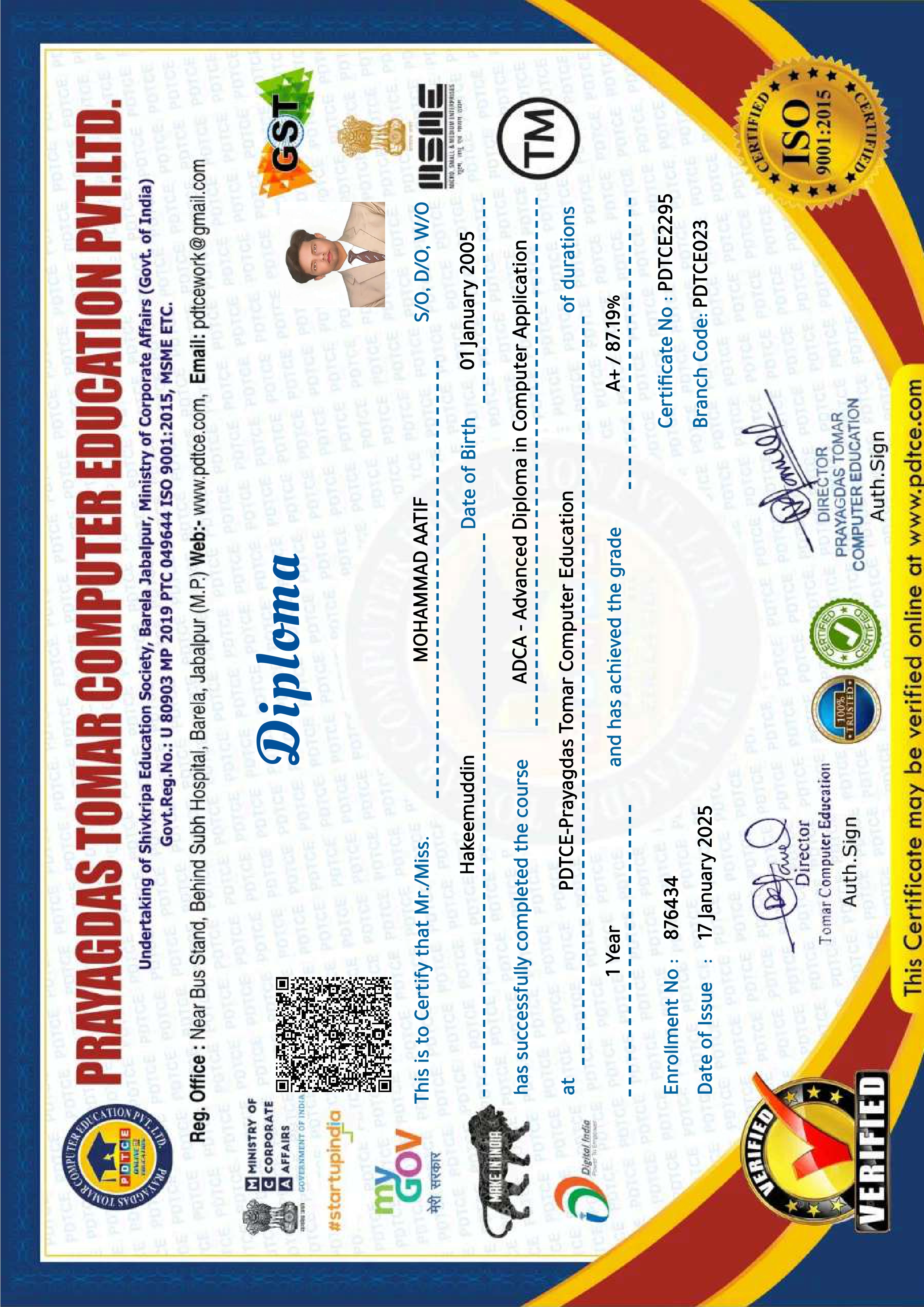 Each course was conducted and assessed online through the Skill India Digital platform, and all certificates were digitally verified and co-signed by Microsoft India and NCVET. These achievements represent my dedication to continuous upskilling and align with India's national vision of "AI for All."