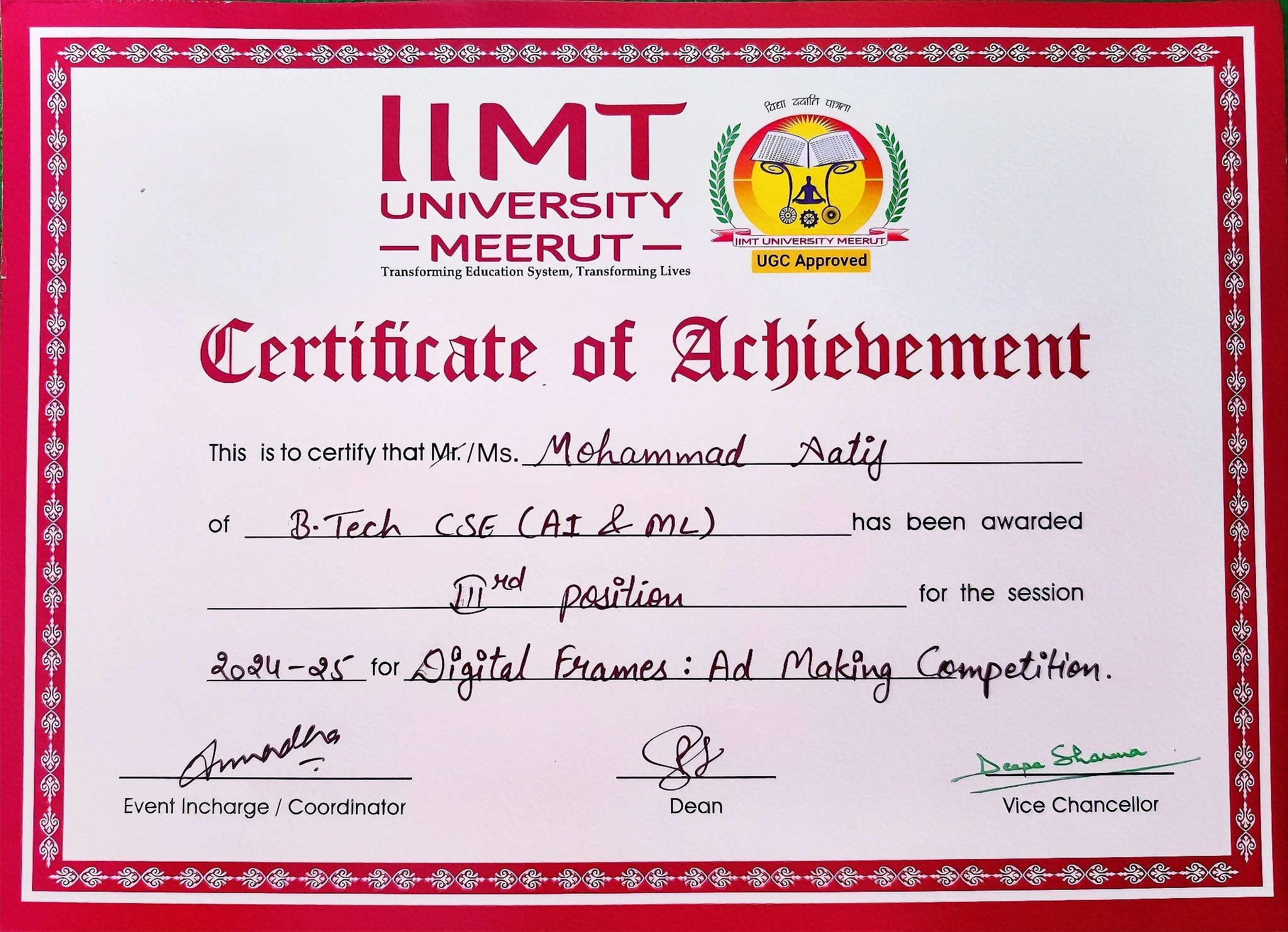 🥉 Secured 3rd Position in Digital Ads Making Competition at IIMT University!