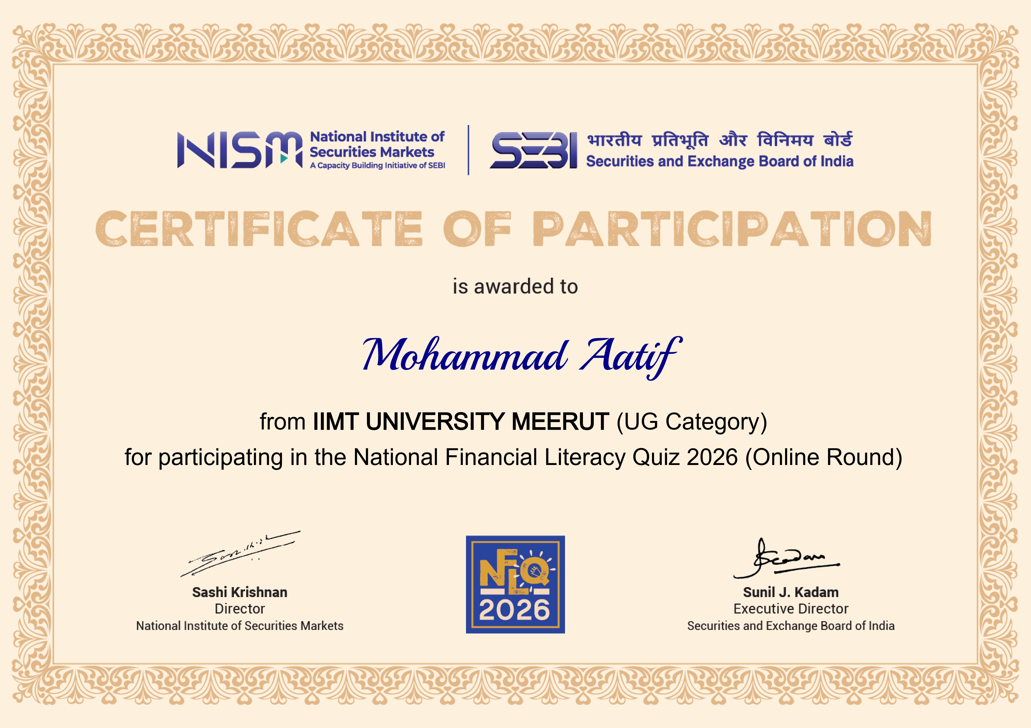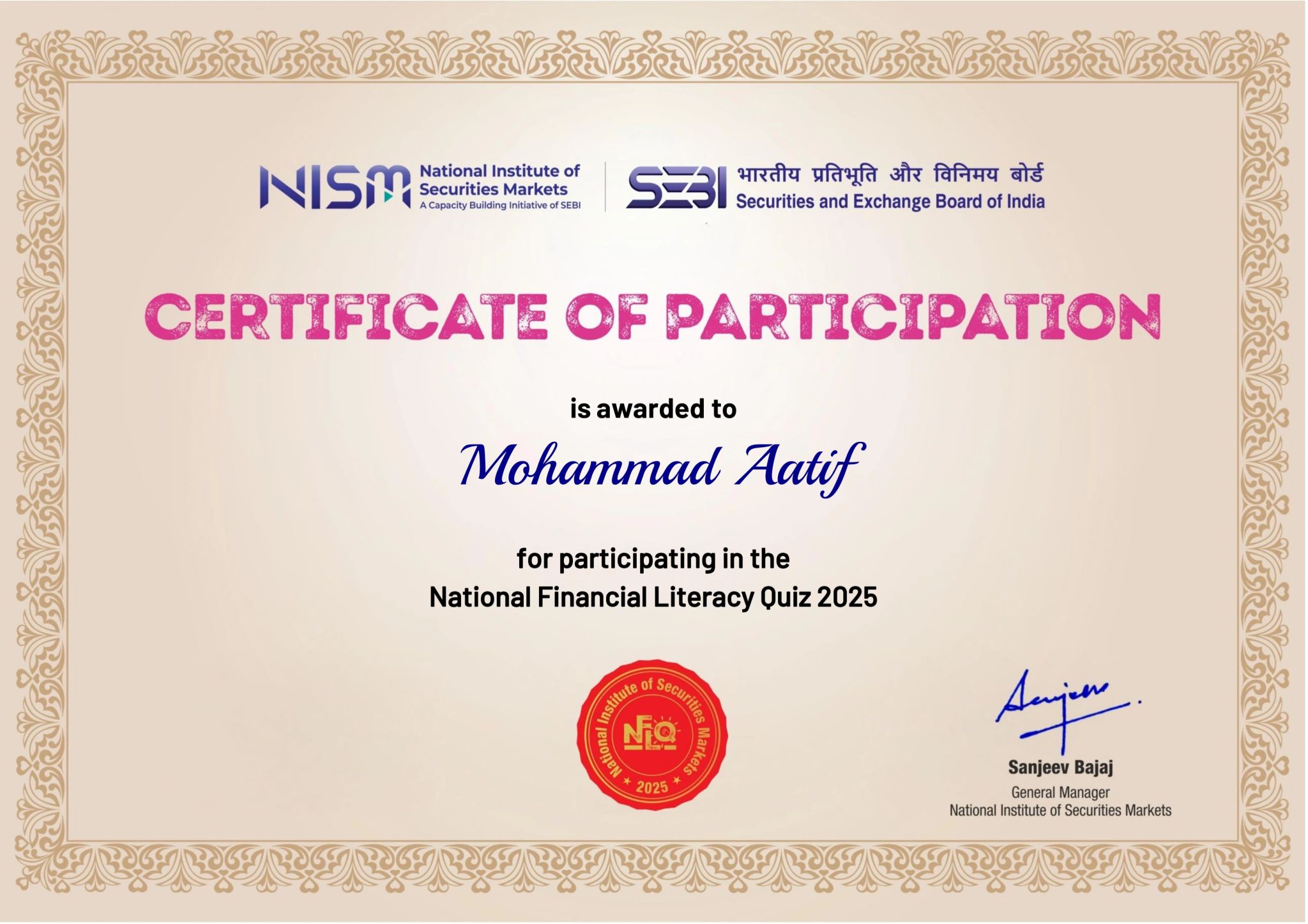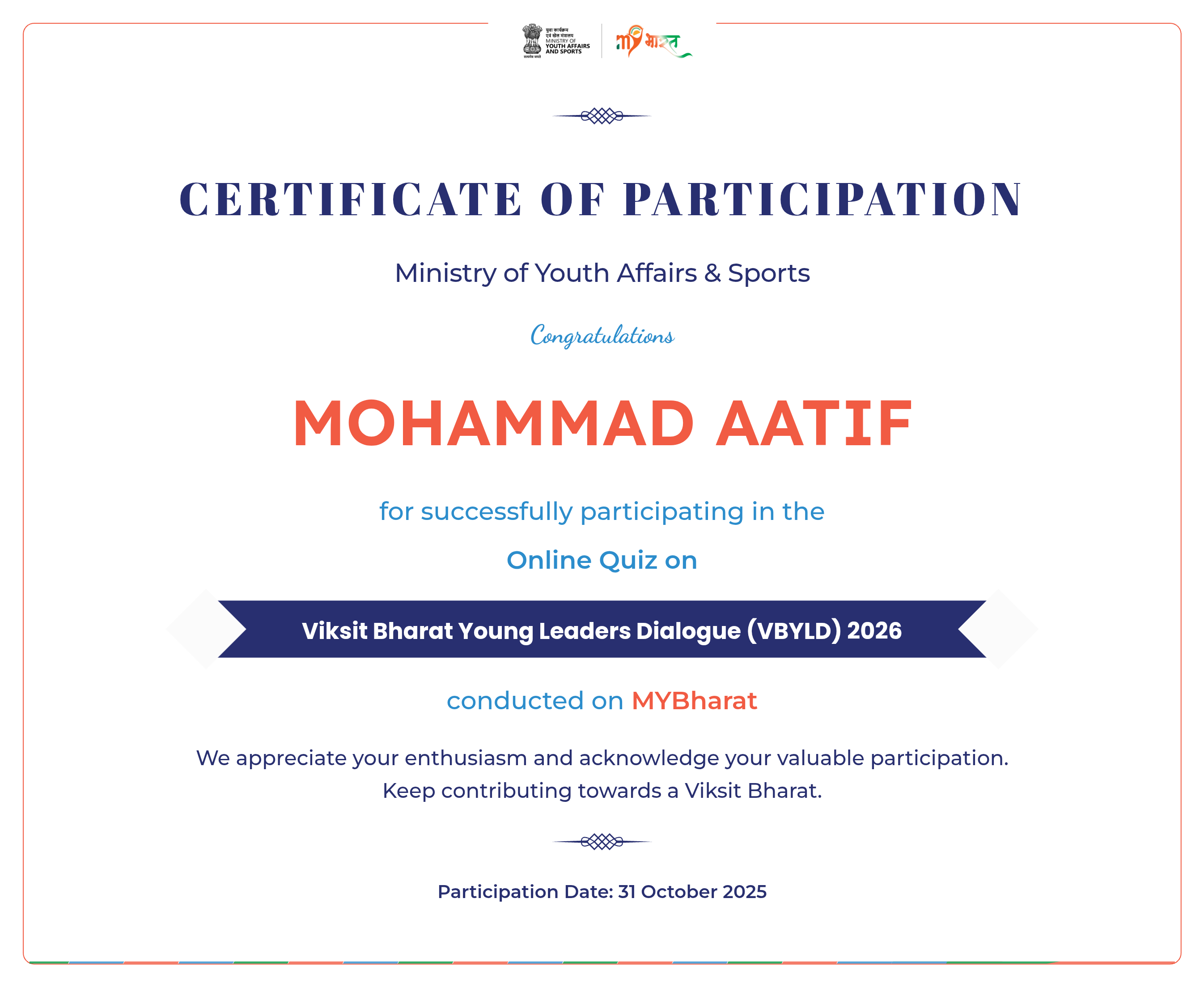 This national-level recognition celebrates my active participation in India's digital skilling mission, consistent learning efforts, and contribution towards building a skilled, future-ready workforce.